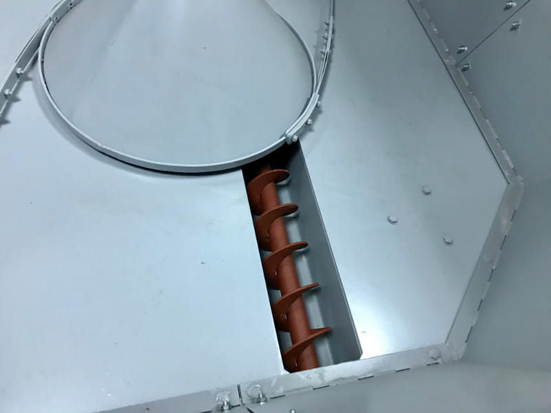 Musimy mieć odpowiednią ilość miejsca: palniki na zrębki drzewne wymagają powiększonych koszy na paliwo. Zrębka jest mniej kaloryczna od peletu i ma niższą wartość nasypową, musimy jej zużyć więcej aby uzyskać podobną energię z peletu czy ekogroszku. Dlatego kosze na zrębki muszą być specjalnie skonstruowane i powiększone. Wynika to z faktu, że sucha zrębka jest lekka i trzeba specjalnego systemu aby ją podać. Aby skutecznie wybrać zrębki z kosza, system podawczy oparty jest na ramionach ze specjalnej stali, które pełnią funkcję nagarniaczy paliwa. Pokazuje to fotka.